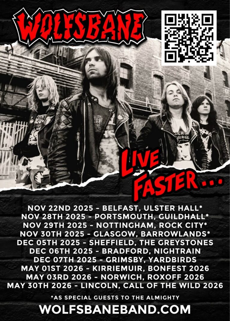 Following SOLD OUT shows with The Almighty and the release of a newly re-recorded version of their Rick Rubin-produced 1989 debut album ‘Live Fast, Die Fast’ titled ‘Live Faster’, Wolfsbane are touring in 2026.